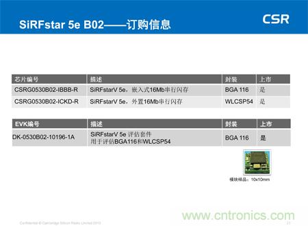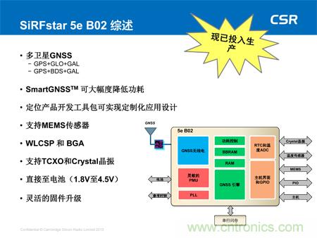 SiRFstar 5e B02可用于資產(chǎn)跟蹤及可穿戴設(shè)備應(yīng)用。該低功耗器件現(xiàn)已全面投入生產(chǎn),不僅可大幅度降低功耗且不影響定位精度,還可提供多衛(wèi)星GNSS支持,可滿足所有地區(qū)對GNSS的需求,包括美國的GPS、歐洲的伽利略、俄國的Glonass及中國的北斗衛(wèi)星系統(tǒng)。此外,SiRFstar 5e B02還搭載了CSR全新的SmartGNSS技術(shù),可提供兩種模式最大程度地降低功耗,并能夠根據(jù)信號條件及衛(wèi)星可用性自主管理GNSS系統(tǒng)的應(yīng)用。