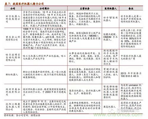 隨著醫用機器人技術的不斷突破和發展,從2005年開始我國有一批重點高校科研醫院單位及研究所在研究醫用機器人系統并取得了一些小成就,比如哈工大的微創腹腔外科手術機器已經成功被專家驗收,天津大學的妙手機器人在今年3月份開始臨床使用;同時,隨著醫用機器人商業化市場化的可能性愈發明晰,已經有部分企業正在生產或者打算進軍醫用機器人細分行業,其中就包括機器人領先企業的博實股份和新松機器人。