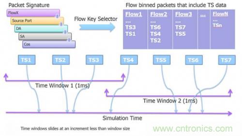 硬件仿真的標志之一是,它能對大型復雜系統進行復雜性能分析。某些情況下,可能需要數百萬個數據包才能切中當前設計中穩態分析的要點。以測量百萬兆以太網交換機的流量比特率為例??梢圆捎锰摂M以太網簽名生成和數據包時間戳 (TS) 來計算這些測量。