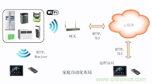 從上圖可看出,家庭自動化系統(tǒng)將嵌入式微控制器技術、無線連接、接入網(wǎng)絡融合為一體。Apps軟件能夠使用戶發(fā)現(xiàn)家里的設備,予以設置,或者創(chuàng)建一個動作加以控制。