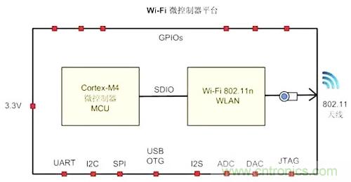 微控制器是家居智能化的關鍵部件。MCU和Wi-Fi是最基本的兩個元素。以某一Wi-Fi微控制器為例,它是內(nèi)置全功能微控制器的單芯片SoC,支持802.11n Wi-Fi。