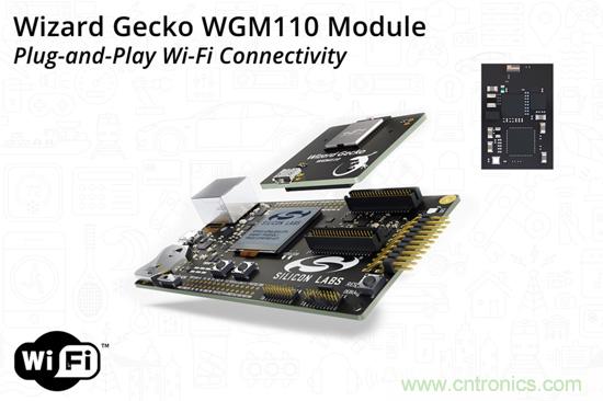 Silicon Labs全集成Wizard Gecko WGM110模塊解決方案包括了實現可靠IoT Wi-Fi連接所需的所有必要元素:高性能2.4GHz 802.11b/g/n無線電、內置天線、全球認證、節能型EFM32™ Gecko微控制器(MCU)、嵌入式Wi-Fi協議棧和多種互聯網協議(包括帶有TLS安全的TCP和UDP)。