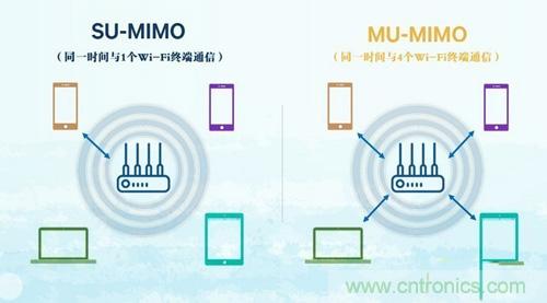但MIMO(也稱SU-MIMO,即單用戶多輸入多輸出)也有自己的缺陷——會產(chǎn)生MIMO間隙。簡單來說就是目前我們熟悉的無線路由/AP大都有3-4根天線,但WiFi終端通常只有1-2根天線。而采用MIMO技術(shù)的無線路由/AP同一時間只能與1個WiFi終端建立連接和通訊,因此WiFi終端很難全部占用所有傳輸信道,即無法占滿無線路由/AP的全部容量,這種差異就被稱為MIMO間隙。