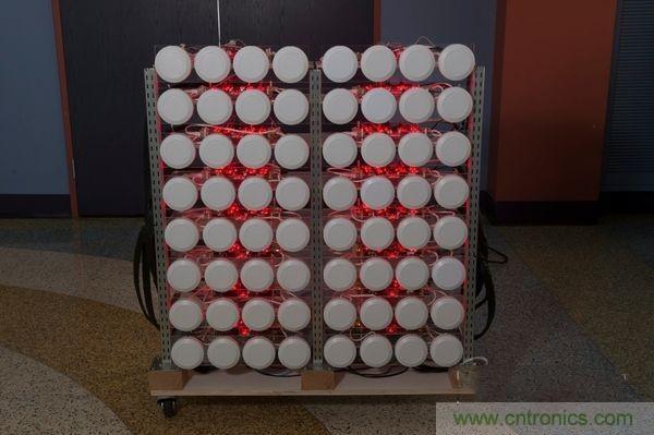大家可以從下圖中美國萊斯大學的大規模天線陣列原型機中看到由64個小天線組成的天線陣列,這很好地展示了大規模天線系統的雛形。