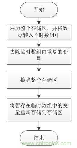 將Flash中存寫的地址值存入臨時數(shù)組中,并根據(jù)地址值判斷是否存在重復存儲的無效數(shù)據(jù),并將無效數(shù)組失效;
