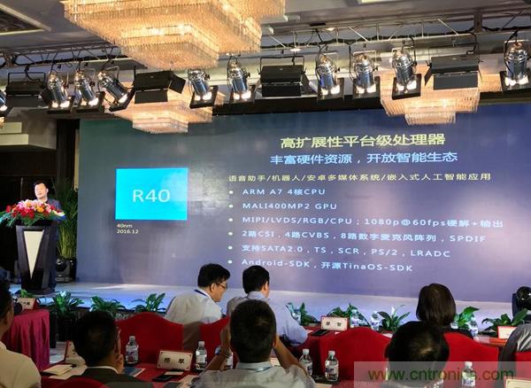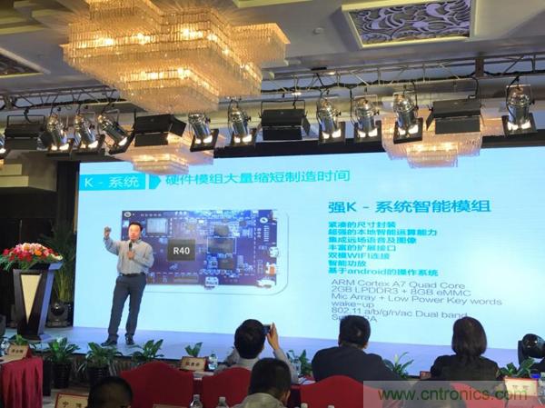 隨后,李智展示了全志最具擴展性的智能硬件開放平臺R40系統,R40有遠場語音交互、多顯示接口和音視頻編解碼等優(yōu)勢,非常適用于語音助手、機器人、定制化的安卓多媒體系統產品開發(fā)。