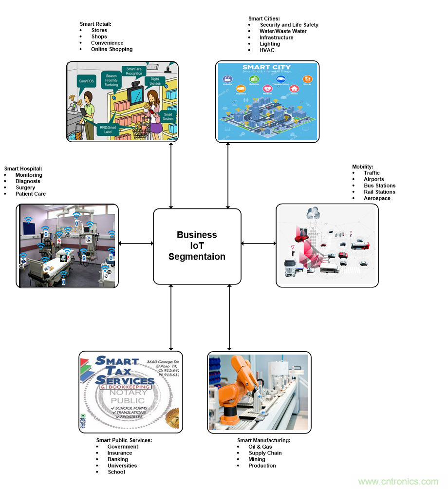 企業物聯網的覆蓋范圍巨大,包括零售、醫療、能源、出行、城市、制造業和公共服務。企業物聯網細分市場會改變組織和社區,從而創造一個實現經濟增長的新時代。物聯網通過連接數據、人員和機器來提高生產力、生產效率以及日常運營水平。企業物聯網也可以作為幫助企業識別未開發領域新增長機會的工具。