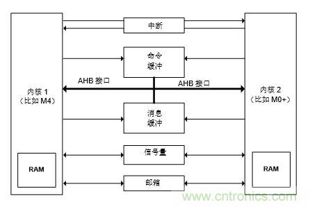 中斷法:這種方法讓一個內核向另一個內核發送一個中斷來指示一個應用程序事件。通常中斷程序非常緊湊,不會占用太多的代碼存儲空間。與任何中斷機制一樣,每個中斷都有自己的 ISR(中斷服務程序),通過它可以讓相應的內核執行特定的任務。在實際的數據傳遞中,有一個可以被多個內核訪問的共享內存。除了共享數據之外,它還提供了請求和確認消息的機制。