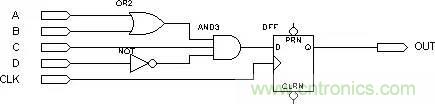 下面我們以一個簡單的電路為例,具體說明PLD是如何利用以上結構實現邏輯的,電路如下圖: