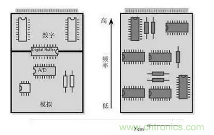 上面的兩種情況,說明數(shù)模混合單板中,模擬電路極易受到干擾,會影響信噪比等指標。所以在數(shù)模混合單板 PCB 設計過程中,要對布局布線提出很高的要求。