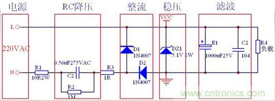阻容降壓因其體積小成本低的特點,適合于小功率小電流負載。常見應用有電能表、小功率LED燈驅動、小家電和溫控器等。