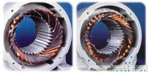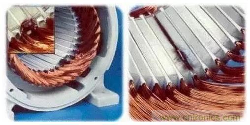 上圖為4極電機缺相燒壞圖片,電機線圈對稱燒壞就是缺相燒壞,星形接法缺相燒的話,2極電機只有2組線圈是好的,4極電機對稱燒只有4組線圈是好;三角形連接缺相燒的話,2極電機對稱燒2組線圈,4極電機對稱燒4組線圈。
