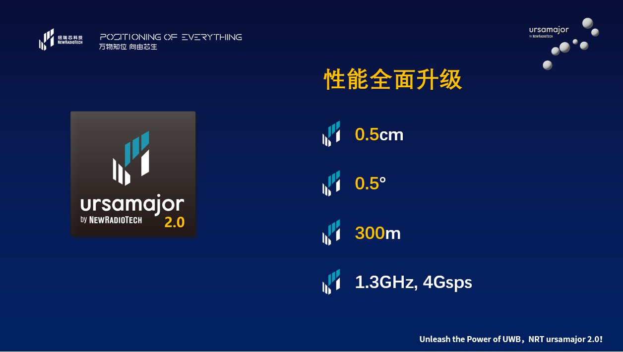 作為一家專注于無線通信技術(shù)芯片領(lǐng)域的先驅(qū)企業(yè),紐瑞芯始終致力于提供最優(yōu)質(zhì)、最高效的產(chǎn)品和解決方案。紐瑞芯在與合作伙伴密切合作的過程中,發(fā)現(xiàn)市場對UWB技術(shù)性能提升越來越急迫,且其應(yīng)用的范圍正在不斷延伸,場景越發(fā)豐富。這次發(fā)布的NRT ursamajor 2.0,是紐瑞芯深度挖掘了這些需求痛點(diǎn),對現(xiàn)有UWB技術(shù)產(chǎn)品進(jìn)行優(yōu)化和升級后的成果,旨在提供更加精確、穩(wěn)定、安全的定位通信服務(wù)。——Unleash the power of UWB!
