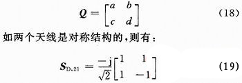 對于一個雙天線系統,應該有兩個正交模同時存在,去耦合網絡是一個四端口網絡,正交輻射矩陣可以寫為: