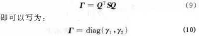 式中:A=diag{λ1,λ2},而Q是幺正的(即QQH=I)。根據厄米特矩陣的性質,兩個正交值λ1和λ2都是實數,并且小于等于1。將式(5)代入式(4)得: