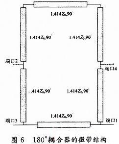 這是一個180°定向耦合器,也稱為rat-race網絡,如圖5所示。物理上可以通過微帶實現,如圖6所示。然而對于第1部分提出的710 MHz天線,由于波長太長,這樣的耦合器在移動設備上無法實現。為了實現去耦合,可以用貼片電感和電容做出成等效傳輸線,從而用電感和電容做成一個耦合網絡,這就可以顯著降低耦合器占用的體積。如圖7所示,一個等效1/4波長傳輸線可以用兩個電容和一個電感來等效代替。電容和電感的計算公式為: