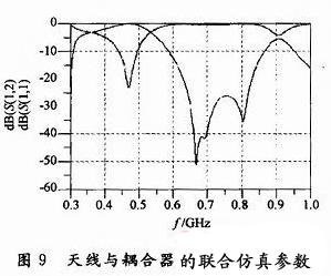 本文從s參數的角度分析了一個雙天線系統的去耦合方法,并通過一個天線設計實例,使用HFSS和ADS進行去耦合前和去耦合后的仿真。結果顯示加入去耦合網絡和匹配網絡后兩個天線間的耦合可以降低至-35 dB以下,反射系數也可達到-15 dB以下,這滿足了工作于710 MHz的移動設備的要求。