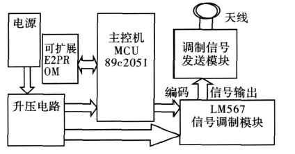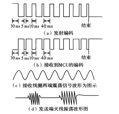 本系統的閱讀器可在6cm范圍內識別應答器的有無,若有應答器在監測范圍內,則給出明確的指示并讀取應答器預設的4位編碼,然后顯示;另外,應答器部分還可以通過開關設置4位編碼在閱讀器識別范圍內送出編碼信號。同時閱讀器還具有對應答器的編碼進行寫入的功能,由應答器接收并儲存。設計中重點是保證正確率,可以從軟件上增加校驗碼來提高無線傳輸的可靠率。