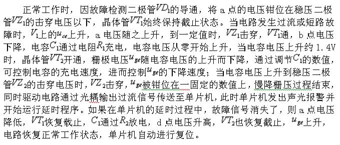 這與傳統的簡單限流或直接關閉IGBT的控制方式有本質的區別,它是利用單片機的智能性改變其工作方式來保護IGBT的安全,從而可靠的保證IGBT的安全。