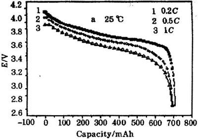 圖2700nAh鋰離子電池已不同速率放電時(shí)的放電曲。