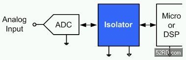 圖2:模擬數字轉換器與處理器之間的隔離控制范例