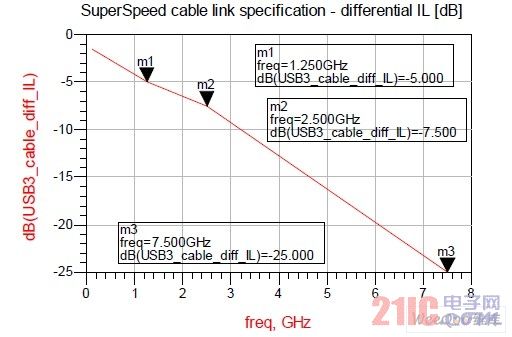 帶ESD防護的USB3.0超高速鏈路的信號完整性分別在帶ESD防護和未帶ESD防護的情況下,對圖1所示的整個USB3.0超高速鏈路執行了信號完整性模擬。整個收發部分具備90歐姆差分阻抗,考慮了發送側和接收側的寄生效應。測得數據表明了USB3.0電纜的狀態。規定最長USB3.0電纜長度為3米。
