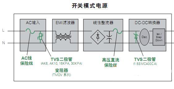 AC線保險絲選用464系列,它提供了最小化、快速響應的表面貼裝型250VAC保險絲,符合IEC60127-4標準,464特別針對電源和照明系統設計應用而設計。