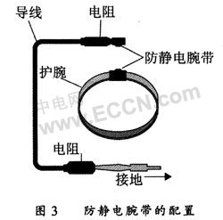 (4)操作者在接觸電子產(chǎn)品時必須戴防靜電手腕帶,并要求戴腕帶的操作人員每天上、下午上班前各測試一次,以保證腕帶與人體的良好接觸,腕帶電阻1 MΩ;