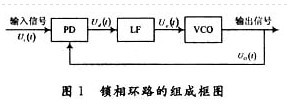 鎖相環路由3部分組成:鑒相器PD(Phase Detector)、環路濾波器LF(Loop Fillter)和壓控振蕩器VCO(Voltage-Control Oscillator)。組成框圖如圖1所示:
