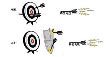 簡而言之,SPD 會阻止具有破壞性的瞬變電壓浪涌電平到達(dá)所保護(hù)的設(shè)備。SPD 通過吸收過剩的電壓、將其分流或者組合使用這兩種手段,達(dá)到削弱浪涌電壓的目的。圖 1顯示了飛向靶子的箭。靶子代表 SPD,而箭代表瞬變電壓尖峰脈沖。當(dāng)箭擊中靶子時,它會被吸收并滯留在靶子中。然而,靶子的厚度將決定箭是否可以在沒有穿到另一側(cè)時停止。同樣,在這種模式下,箭將不停地?fù)p壞靶子,將來靶子可能無法很好地阻止箭。現(xiàn)在,假設(shè)在靶子前面有一個金屬盾牌。箭發(fā)出后,它會擊中盾牌,無任何損害地彈飛到靶子的旁邊。這就是大多數(shù) SPD 的基本工作原理。SPD 吸收能量(并且根據(jù)它們的質(zhì)地好壞,可以防止浪涌,但仍然會受到損壞),或者將電壓分流到設(shè)備接地線中。在大多數(shù)情況下,SPD 會將吸收和分流瞬變電壓浪涌的設(shè)備組合使用。