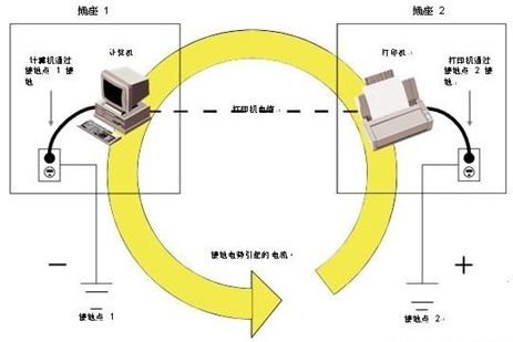 工廠設(shè)施中的接地連接只能連接到電力線路配電板上的單一連接點(diǎn)。這種與地面單點(diǎn)連接的方式可以避免由于疏忽而造成多個接地點(diǎn)。多個接地點(diǎn)會造成市電電壓的差異,導(dǎo)致不希望的電流流向低壓數(shù)據(jù)線。并對數(shù)據(jù)傳輸造成噪音干擾,雖然不會引起太大的損害,但也可能會形成瞬變電壓浪涌,嚴(yán)重?fù)p壞設(shè)備傳輸線。圖 2 顯示了一個接地回路示例。每個設(shè)備獨(dú)立接地(每個電源插座都參照不同的接地點(diǎn))。如果設(shè)備通過某種形式的接地(也導(dǎo)電)數(shù)據(jù)線連接在一起,就會出現(xiàn)問題。在圖2 中,計(jì)算機(jī)使用并行通信電纜連接到打印機(jī)。如果所使用設(shè)備接地點(diǎn)之間存在電勢差(有電荷差異),那么電流可能會通過并行電纜從一個設(shè)備流到另一設(shè)備,以便中和電荷。這就是“接地回路”,會對設(shè)備造成嚴(yán)重?fù)p壞,因?yàn)樵O(shè)備在正常條件下只需很小的電力就 可以工作。雖然這個示例只顯示了一處設(shè)施,但接地回路也可以在不同設(shè)施之間形成。