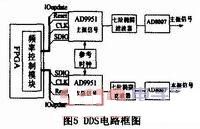 頻率信號產生電路在FPGA中頻率控制模塊的控制下,產生高精度正弦主振信號和本振信號,分別用于光調制和混頻。此電路產生的信號要求頻率可調,且具有高的頻率穩定性和低的相位噪聲,相位抖動小,以保證最終的測量精度。
