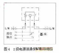 單片(單極)設計、用于防止電源系統因雷擊過壓或操作過電壓對設備造成損壞。適用于低配電系統的第二級保護。依據不同的配電系統(T T/T N/I T)的選擇多種組合方式。圖4所示為2級電源浪涌保護器原理圖。