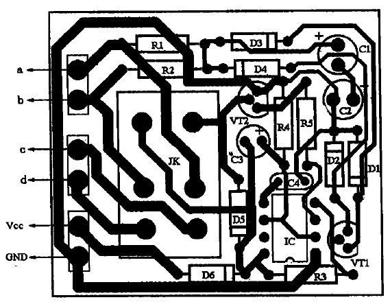 555一定要選用功耗很低的CMOS時基電路。VT1、VT2用9014、C1815型小功率塑封晶體管,要求電流放大倍數(shù)β>100.D1~D5均用1N4148型硅開關(guān)二極管,D6用于電源接反保護,可選用1N4001~1N4007型硅整流二極管。R1~R5均用0.5 W五色環(huán)金屬膜電阻。C1、C2用優(yōu)質(zhì)鋁電解電容,C3要選用漏電小、精度高的鉭電解電容,否則將影響延時精度。JK選用12 V/7 A雙聯(lián)型繼電器(左、右聲道各用一組),如JZC-22F.