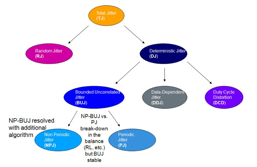 但到目前為止,使用抖動(dòng)分離技術(shù)一直很難測(cè)量串?dāng)_引起的抖動(dòng)或有界不相關(guān)抖動(dòng)的影響。由于抖動(dòng)算法沒有考慮BUJ,因此BUJ一直與RJ歸并在一起,與BER測(cè)試儀獲得的結(jié)果相比,得到的是悲觀的總抖動(dòng)結(jié)果。