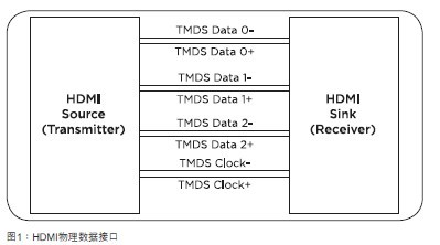 HDMI的物理數據接口包含四個最小化差分信號傳輸(TMDS)對:三個數據差分對通道和一個時鐘差分對通道,如圖1所描述。