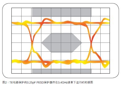 TE電路保護的0.25pFPESD保護器件在3.4GHz速率下運行時的眼圖表現如圖2所示。
