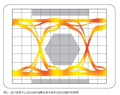 如圖3所示,硅解決方案具有更高的電容。雖然它們的眼圖通常在2.25GHz或1.48GHz運行速度下測量,以符合1080p的36位和24位色彩深度,但是即使是在這些速度下,它們的眼圖也似乎延伸至HDMI1.3規范。這可能會導致電路板設計上的限制增加。
