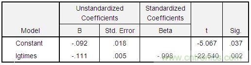 lg(ratio) = -0.092 – 0.111*lg(times),通過t檢驗,此方程關系非常顯著,如下表。