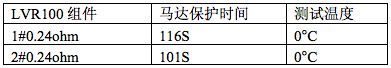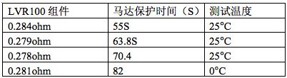 選取兩片 Rmin 電阻 0.22ohm 的 LVR100 和功率電阻集成的組件,下面表 1 為馬達的保護時間。