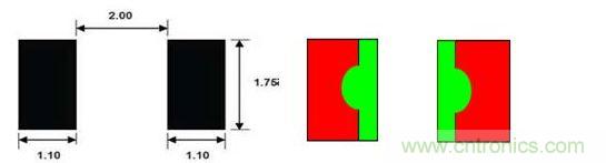 建議將鋼網(wǎng)開口間距加大并適當(dāng)外擴(kuò)另一側(cè)尺寸0.2~0.3mm,鋼網(wǎng)厚度不得小于0.1mm.