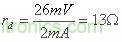 ID為靜態電流,常溫下UT=26mV??芍o態電流ID越大,rd將越小。設UD=0.7V時,ID=2mA。由此可得直流電阻RD=350,而動態電阻(交流電阻)