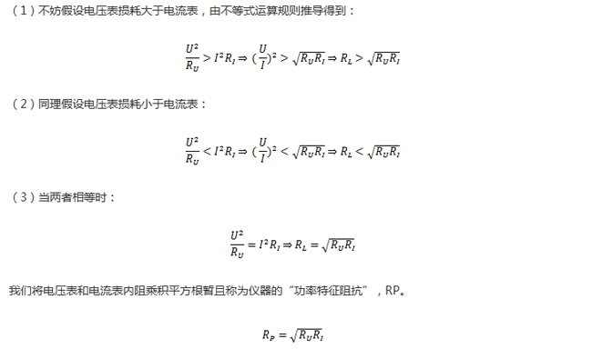 (1)電流表內接時,電流表讀數即為負載電流,電壓表讀數是電流表內阻壓降和負載電壓之和,因此儀器的測量結果中包含了電流表的損耗功率PI。