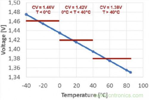 如能提供兩種或三種充電電壓,則有可能在整個溫度范圍上實現逐步逼近(見圖3)。
