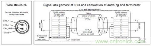 在CAN的應用場合,由于距離一般都較遠,所以大部分采用屏蔽層單點接地的原則,在干線上找一點將屏蔽層用導線直接接地,該點應是所受干擾最小的點,同時該點位于網絡中心附近。