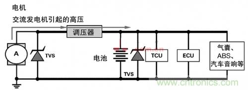 現(xiàn)代汽車(chē)設(shè)計(jì)中,所有車(chē)載電子設(shè)備都要連接電池和交流發(fā)電機(jī)。交流發(fā)電機(jī)是電氣瞬態(tài)的主要來(lái)源,其中最 糟的是拋負(fù)載。這種情況發(fā)生在電池已經(jīng)斷開(kāi)而交流發(fā)電機(jī)正在發(fā)電、其他負(fù)載還在交流發(fā)電機(jī)環(huán)路上時(shí)。如果置之不理,電氣尖峰和瞬態(tài)將沿著電線傳遞,導(dǎo)致個(gè)別電子設(shè)備和傳感器故障,或永久損壞汽車(chē)的電子系統(tǒng)。當(dāng)然,拋負(fù)載失控還會(huì)威脅車(chē)輛本身的安全性和可靠性。
