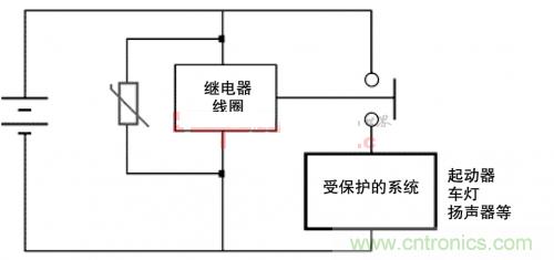 也可以用MOV對(duì)汽車(chē)子系統(tǒng)(如氣囊、傳動(dòng)系和氣候控制)提供交流發(fā)電機(jī)瞬態(tài)保護(hù)。也可以作為瞬態(tài)浪涌的分流電阻使用,避免直流電源線受浪涌影響(見(jiàn)圖3)。