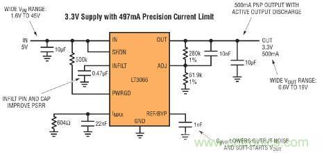3.3V Supply with 497mA Precision Current Limit:具 497mA 精準電流限制的 3.3V 電源