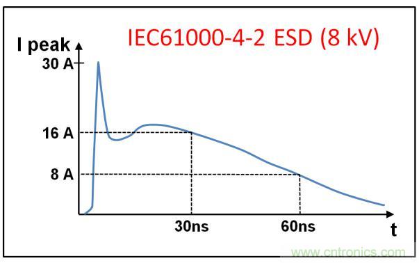 靜電放電(ESD)是指兩個電位不同的帶電體之間因為近接觸或電場的傳導而突然產生靜電電荷的傳輸。其特性是在較短的時間內有較大的電流。IEC 61000-4-2測試的主要目,就是確定系統在工作過程中對系統外部ESD事件的抗擾度。IEC 61000-4-2規定了不同環境狀況下的電壓測試級別,共分4個級別。1級最輕微,4級最嚴重。1級和2級適合擁有防靜電材料的 受控環境中安裝的產品。3級和4級適合情況更嚴重的環境中安裝的產品,這類環境下更常發生帶有較高電壓的ESD事件。