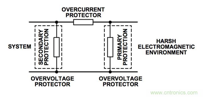 所有上述三個元件協同工作,與系統輸入/輸出配 合,一起針對高電壓大電流瞬變為系統提供系統級保護。